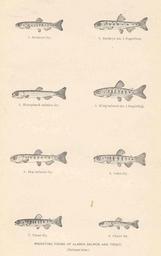 | Keywords: FMIB 37731 Migrating Young of Alaska Salmon and Trout.jpeg Migrating Young of Alaska Salmon and Trout 1 Sockeye fry; 2 sockeye no 1 fingerling; 3 humpback salmon fry; 4 king salmon no 1 fingerling; 5 dog salmon fry; 6 coho fry; 7 trout fry; 8 charr fry Subject Trout Salmon Chars Sockeye salmon Pink salmon Chinook salmon Chum salmon Coho salmon Tag Fish 1906 Cite book Some Observations on Salmon and Trout in Alaska Report of the Commissioner of Fisheries for the Fiscal Year 1906 and Special Papers Chamberlain F M Washington DC Government Printing Office 1906 Plate 1 F M Chamberlain PD-UWASH-FMIB Institution University of Washington FMIB-source accession number 37731 Images from the Freshwater and Marine Image Bank to check F M Chamberlain Oncorhynchus nerka Oncorhynchus gorbuscha Oncorhynchus tshawytscha Oncorhynchus keta Oncorhynchus kisutch |