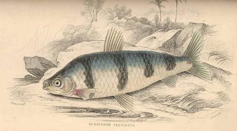 | Keywords: FMIB 38609 Schizodon fasciatus.jpeg check categories 13 September 2015 4 Schizodon fasciatus Subject Curimata Schizodon Tag Fish 1852 Cite book Fishes of British Guiana Part I Schomburgk R H Edinburgh Scotland W H Lizars 1852 Naturalist's Library vol 39 Facing page 252 Creator Robert Hermann Schomburgk PD-UWASH-FMIB Institution University of Washington FMIB-source accession number 38609 Images from the Freshwater and Marine Image Bank to check Robert Hermann Schomburgk Curimatá Schizodon Schizodon fasciatus |