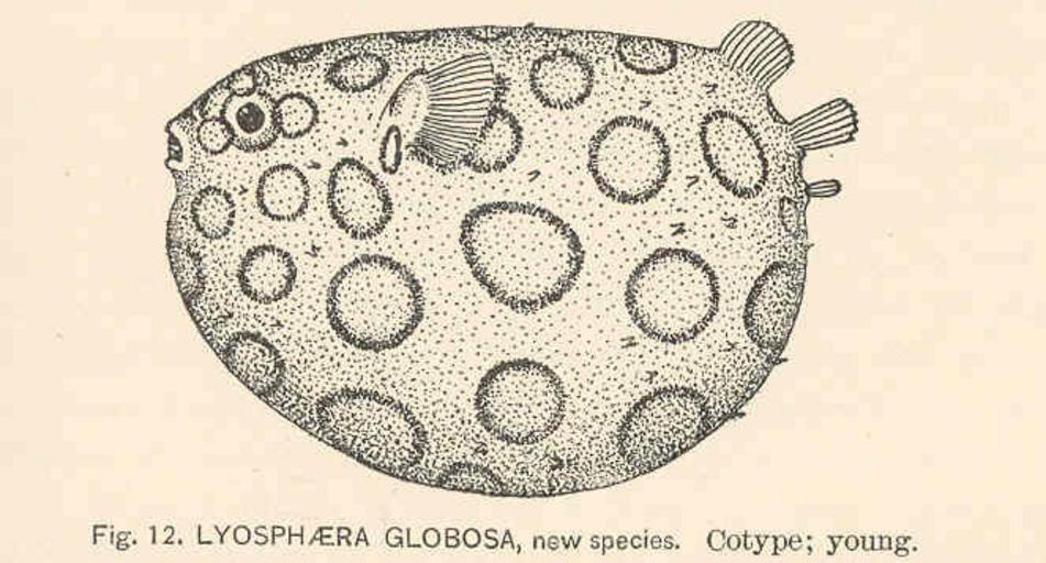 | Keywords: FMIB 39782 Lyosphaera globosa, new species Cotype; young.jpeg check categories 15 September 2015 3 Lyosphaera globosa new species Cotype; young Subject Diodontidae Lyosphaera Tag Fish 1898 s of New or Little-Known Genera and Species of Fishes from the United States Evermann Barton W ; Kendall William C Washington DC Government Printing Office 1898 Bulletin of the United States Fish Commission vol 17 1897 Plate 9-12 Creator Barton Warren Evermann Creator William Converse Kendall PD-UWASH-FMIB Institution University of Washington FMIB-source accession number 39782 Images from the Freshwater and Marine Image Bank to check Barton Warren Evermann Drawings of fish by William Converse Kendall Diodontidae |