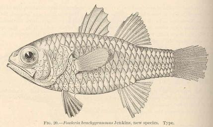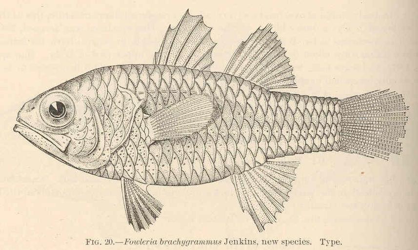 | Keywords: FMIB 41036 Fowleria brackhgrammus Jenkins, new species Type.jpeg Fowleria brackhgrammus Jenkins new species Type Subject Apogon Fowleria Tag Fish 1904 s of New Species Jenkins Oliver P Washington DC Government Printing Office 1904 Bulletin of the United States Fish Commission vol 22 1902 Fig 18 Incorrectly noted Fig 20 Creator Oliver Peebles Jenkins PD-UWASH-FMIB Institution University of Washington FMIB-source accession number 41036 Images from the Freshwater and Marine Image Bank to check Oliver Peebles Jenkins Foa brachygramma |