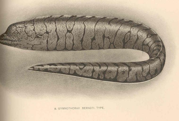 Keywords: FMIB 41076 Gymnothorax berndti Type.jpeg Gymnothorax berndti Type Subject Gymnothorax Morays Eels Tag Fish 1904 Cite book Catalogue of the Shore Fishes Collected by the Steamer Albatross About the Hawaiian Islands in 1902 Snyder John Otterbein Washington DC Government Printing Office 1904 Bulletin of the United States Fish Commission vol 22 1902 Plate 4-8 Creator John Otterbein Snyder PD-UWASH-FMIB Institution University of Washington FMIB-source accession number 41076 Images from the Freshwater and Marine Image Bank to check John Otterbein Snyder Gymnothorax berndti |