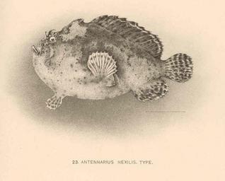 | Keywords: FMIB 41091 Antennarius nexilis Type.jpeg Antennarius nexilis Type Subject Antennarius Tag Fish 1904 Cite book Catalogue of the Shore Fishes Collected by the Steamer Albatross About the Hawaiian Islands in 1902 Snyder John Otterbein Washington DC Government Printing Office 1904 Bulletin of the United States Fish Commission vol 22 1902 Plate 13-23 Creator John Otterbein Snyder PD-UWASH-FMIB Institution University of Washington FMIB-source accession number 41091 Images from the Freshwater and Marine Image Bank to check John Otterbein Snyder Antennatus coccineus |