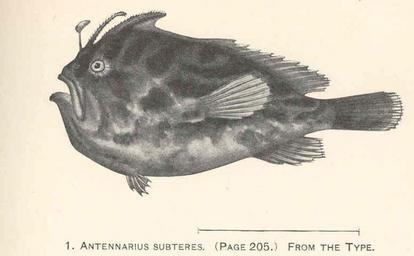 | Keywords: FMIB 41232 Antennarius subteres From the type.jpeg Antennarius subteres From the type Subject Antennarius Tag Fish 1912 Cite book New Pediculate Fishes from the Philippine Islands and Contiguous Waters Radcliffe Lewis Washington DC Government Printing Office 1912 Proceedings of the United States National Museum vol 42 Plate 17-1 Creator Lewis Radcliffe PD-UWASH-FMIB Institution University of Washington FMIB-source accession number 41232 Images from the Freshwater and Marine Image Bank to check Lewis Radcliffe Nudiantennarius subteres |
