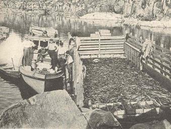 | Keywords: FMIB 41526 Fifteen tons of eels aboard a scow for delivery to cold storage plant to be preserved for food for young salmon fry.jpeg check categories 17 August 2015 2 Fifteen tons of eels aboard a scow for delivery to cold storage plant to be preserved for food for young salmon fry Subject Salmon feeding and feeds Eels Tag Hatcheries 1913 Cite book Biennial Report of the Department of Fisheries of the State of Oregon to the Twenty-Seventh Legislative Assembly Regular Session 1913 Salem Oregon Willis S Duniway State Printer 1913 99 author PD-UWASH-FMIB Institution University of Washington FMIB-source accession number 41526 Images from the Freshwater and Marine Image Bank to check Anguilliformes Fish hatcheries |