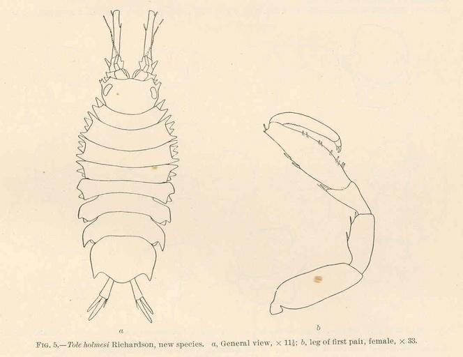 | Keywords: FMIB 41763 Tole holmesi Richardson, new species a, general view; b, leg of first pair, female.jpeg check categories 28 August 2015 3 Tole holmesi Richardson new species a general view; b leg of first pair female Subject Isopoda Tole Tag Invertebrates 1905 Cite book Isopods from the Alaska Salmon Investigation Richardson Harriet Washington DC Government Printing Office 1905 Bulletin of the Bureau of Fisheries Vol 24 1904 217 Creator Harriet Richardson PD-UWASH-FMIB Institution University of Washington FMIB-source accession number 41763 Images from the Freshwater and Marine Image Bank to check Harriet Richardson Isopoda Tole |