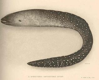 | Keywords: FMIB 42388 Gymnothorax xanthostomus Snyder.jpeg Gymnothorax xanthostomus Snyder Subject Morays Gymnothorax Tag Fish 1905 Cite book Shore Fishes of the Hawaiian Islands With a General Account of the Fish Fauna Jordan David Starr; Evermann Barton Warren Washington DC Government Printing Office 1905 Bulletin of the United States Fish Commission vol 23 for 1903 part I Plate 14-2 Creator David Starr Jordan Creator Barton Warren Evermann PD-UWASH-FMIB Institution University of Washington FMIB-source accession number 42388 Images from the Freshwater and Marine Image Bank to check David Starr Jordan Barton Warren Evermann Gymnothorax nudivomer |