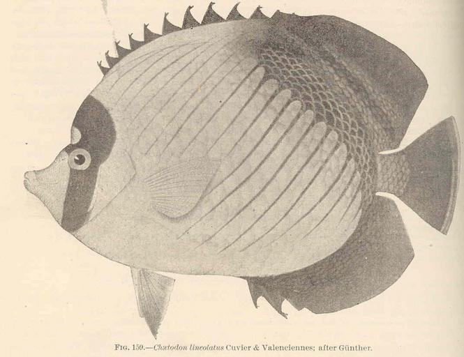 | Keywords: FMIB 42519 Chaetodon lineolatus Cuvier & Valenciennes; after Gunther.jpeg Chaetodon lineolatus Cuvier Valenciennes; after Gunther Subject Chaetodontidae Tag Fish 1905 Cite book Shore Fishes of the Hawaiian Islands with a General Account of the Fish Fauna Jordan David Starr; Evermann Barton Warren Washington DC Government Printing Office 1905 Bulletin of the United States Fish Commission vol 23 for 1903 part I Fig 159 Creator David Starr Jordan Creator Barton Warren Evermann PD-UWASH-FMIB Institution University of Washington FMIB-source accession number 42519 Images from the Freshwater and Marine Image Bank to check David Starr Jordan Barton Warren Evermann Chaetodon lineolatus |