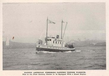 | Keywords: FMIB 44769 Pacific American Fisheries Cannery Tender Warrior This is the first cannery tender to be equipped with a diesel engine.jpeg Pacific American Fisheries Cannery Tender Warrior This is the first cannery tender to be equipped with a diesel engine Subject Warrior Boat Fishing boats Tag Vessels 1915 Cite book Pacific American Fisheries Cannery Tender Warrior This is the first cannery tender to be equipped with a diesel engine Seattle WA 1915 Pacific Fisherman Year Book 1915 23 author PD-UWASH-FMIB Institution University of Washington FMIB-source accession number 44769 Images from the Freshwater and Marine Image Bank to check Warrior ship 1914 |