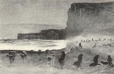 | Keywords: FMIB 45381 Aleutes Capturing Sea-Lions.jpeg check categories 23 August 2015 4 Aleutes Capturing Sea-Lions Natives creeping up between a herd if dizubg Sea-lions and the water at low tide during a moonlight night at Garden Cove St George's Island; getting into position for 'springing the alarm' Subject Sea lions--Alaska Sealing--Alaska Sealers--Alaska Saint George Alaska Geographic Subject United States--Alaska--Saint George Tag Aquatic Mammals 1897 Cite book Our Arctic Province Alaska and the Seal Islands Elliott Henry W New York City NY Charles Scribner's Sons 1897 Library of Contemporary Exploration and Adventure Facing page 364 Creator Henry Wood Elliott PD-UWASH-FMIB Institution University of Washington FMIB-source accession number 45381 Images from the Freshwater and Marine Image Bank to check Henry W Elliott Saint George Marine mammals Saint George Alaska |