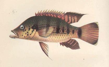 | Keywords: FMIB 45816 Hemichromis fasciatus.jpeg check categories 18 August 2015 2 Hemichromis fasciatus Subject Jewel Fish Cichlids Tag Fish 1863 Cite book Memoire sur les Poissons de la Cote de Guinee Bleeker Pieter Haarlem Netherlands De Erven Loosjes 1863 Natuurkundige Verhandlingen van de Hollandsche MaatschappiJ der Wetenschappen te Haarlem v 18 1863 Plate 5 Fig 1 Creator Pieter Bleeker PD-UWASH-FMIB Institution University of Washington FMIB-source accession number 45816 Images from the Freshwater and Marine Image Bank to check Pieter Bleeker Hemichromis fasciatus |