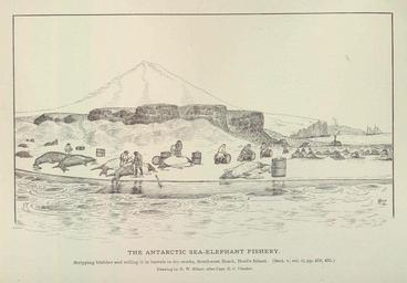 | Keywords: FMIB 46008 Antarctic Sea-Elephant Fishery.jpeg check categories 19 September 2015 5 Antarctic Sea-Elephant Fishery Stripping blubber and rolling it in barrels to try-works Southwest Beach Herd's Island Subject Heard Island Antarctica Elephant seals Geographic Subject Antarctica--Heard Island Tag Aquatic Mammals 1887 Cite book Fisheries and Fishery Industries of the United States Goode George Brown Washington DC Government Printing Office 1887 Plate 229 Creator Henry Wood Elliott H C Chester PD-UWASH-FMIB Institution University of Washington FMIB-source accession number 46008 Images from the Freshwater and Marine Image Bank to check Henry W Elliott H C Chester Heard Island Mirounga Marine mammals |