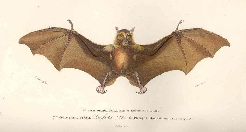 | Keywords: FMIB 46811 Reufsette d'Edwards.jpeg check categories 21 August 2015 3 Reufsette d'Edwards Pteropus Edwardsii Subject Flying foxes Bats Tag Wildlife 1849 Cite book Dictionnaire Universel d'Histoire Naturelle Atlas D'Orbigny M Charles Paris France MM Renard Martinet et Cie 1849 Vol 1 Mannuferes Section Plate 7Abis Creator Charles Henry Dessalines d'Orbigny PD-UWASH-FMIB Institution University of Washington FMIB-source accession number 46811 Images from the Freshwater and Marine Image Bank to check Charles Henry Dessalines d'Orbigny Pteropodidae Chiroptera |