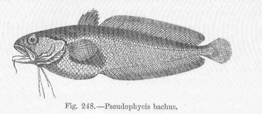 | Keywords: FMIB 47139 Pseudophycis bachus.jpeg Pseudophycis bachus Subject Atlantic cod Tag Fish 1880 Cite book Introduction to the Study of Fishes Gunther Albert C L G Edinburgh Scotland Adam and Charles Black 1880 Fig 248 Creator Albert Günther PD-UWASH-FMIB Institution University of Washington FMIB-source accession number 47139 Images from the Freshwater and Marine Image Bank to check Albert Günther zoologist Pseudophycis bachus Introduction to the Study of Fishes | ||||