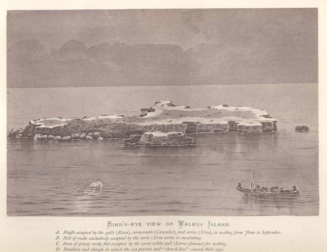 | Keywords: FMIB 47589 Bird's-Eye View of Walrus Island-.jpeg check categories 21 August 2015 1 Bird's-Eye View of Walrus Island A Bluffs occupied by the gulls Rissa cormorants Graculus and arries Uria in nesting from June to September ; B Belt of Rocks exclusively occupied by the arrie Uria arra in incubating ; C Area of grassy rocky flat occupied by the great white gull Larus glaucus for nesting; D Boulders and shingle in which the sea-parrots and 'chooch-kies' coneceal their eggs Subject Water birds--Alaska Walrus Island Alaska Geographic Subject United States--Alaska--Walrus Island Tag Coasts Water birds 1873 00 Cite book Report on the Prybilov Group or Seal Islands of Alaska Elliott Henry W Washington DC Government Printing Office 1873 no pagination in volume Creator Henry Wood Elliott PD-UWASH-FMIB Institution University of Washington FMIB-source accession number 44161 47589 Images from the Freshwater and Marine Image Bank to check Henry W Elliott |