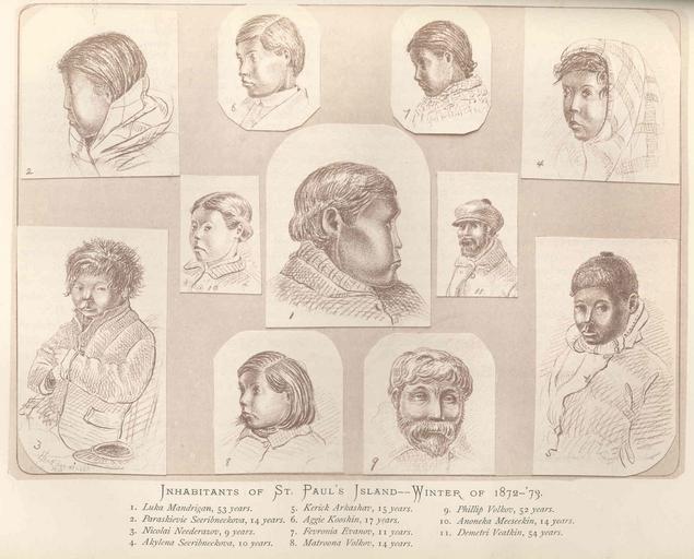 | Keywords: FMIB 47590 Inhabitants of St Paul's Island--Winter of 1872-'73 -.jpeg check categories 21 August 2015 2 Inhabitants of St Paul's Island--Winter of 1872-'73 1 Luka Mandrigan 53 years 2 Paraskievie Seeribneekova 14 years 3 Nicolai Neederazov 9 years 4 Akylena Seeribneekova 10 years 5 Kerick Arbashav 15 years 6 Aggie Kooshin 17 years 7 Fevronia Evanov 11 years 8 Matroona Volkov 14 years 9 Phillip Volkov 52 years 10 Anoneka Meeseekin 14 years 11 Demetri Veatkin 54 years Subject Indians of North America--Alaska Indians of North America--Saint Paul Island Alaska Tag People 1873 00 Cite book Report on the Prybilov Group or Seal Islands of Alaska Elliott Henry W Washington DC Government Printing Office 1873 no pagination in volume Creator Henry Wood Elliott PD-UWASH-FMIB Institution University of Washington FMIB-source accession number 47590 Images from the Freshwater and Marine Image Bank to check Henry W Elliott Saint Paul Island Alaska |