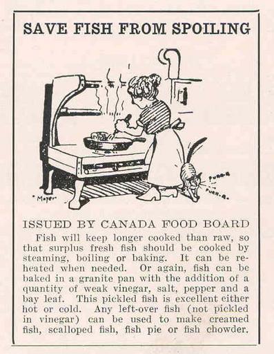 | Keywords: FMIB 47633 Save Fish From Spoiling, issued by Canada Food Board Fish will keep longer cooked than raw, so that surplus fresh fish should be.jpeg check categories 19 August 2015 2 Save Fish From Spoiling issued by Canada Food Board Fish will keep longer cooked than raw so that surplus fresh fish should be cooked by steaming boiling or baking It can be reheated when needed Or again fish can be baked in a granite pan with the addition of a quantity of weak vinegar salt pepper and a bay leaf This pickled fish is excellent either hot or cold Any left-over fish not pickled in vinegar can be used to make creamed fish scalloped fish fish pie or fish chowder Subject Food safety measures Fishery products--Preservation Editorial cartoons Tag Commercial Fisheries 1919 00 Cite book Save Fish From Spoiling issued by Canada Food Board Fish will keep longer cooked than raw so that surplus fresh fish should be cooked by steaming boiling or baking It can be reheated when needed Or again fish can be baked in a granite pan with the addition of a quantity of weak vinegar salt pepper and a bay leaf This pickled fish is excellent either hot or cold Any left-over fish not pickled in vinegar can be used to make creamed fish scalloped fish fish pie or fish chowder Seattle WA 1919 Pacific Fisherman Year Book 1919 116a author PD-UWASH-FMIB Institution University of Washington FMIB-source accession number 47633 Images from the Freshwater and Marine Image Bank to check Political cartoons Fisheries |