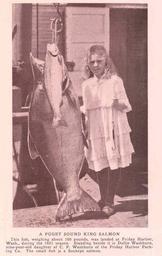 | Keywords: FMIB 47652 Puget Sound King Salmon.jpeg check categories 19 August 2015 2 Puget Sound King Salmon This fish weighing about 100 pounds was landed at Friday Harbor Wash during the 1921 season Standing beside it is Dollie Washburn nine-year-old daughter of C P Washburn of the Friday Harbor Packing Co The small fish is a sockeye salmon Subject Chinook salmon Washburn Dollie Women fishers Gifl fishers Tag Fish People 1922 00 Cite book Puget Sound King Salmon This fish weighing about 100 pounds was landed at Friday Harbor Wash during the 1921 season Standing beside it is Dollie Washburn nine-year-old daughter of C P Washburn of the Friday Harbor Packing Co The small fish is a sockeye salmon Seattle WA 1922 Pacific Fisherman Year Book 1922 59 author PD-UWASH-FMIB Institution University of Washington FMIB-source accession number 47652 Images from the Freshwater and Marine Image Bank to check Oncorhynchus tshawytscha Fishing |