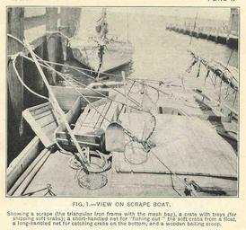 | Keywords: FMIB 47728 View on Scrape Boat.jpeg check categories 19 September 2015 3 View on Scrape Boat Showing a scrape the triangular iron frame with the mesh bag a crate with trays for shipping soft crabs ; a short-handled net for 'fishing out' the soft crabs from a float a long-handled net for catching crabs on the bottom and a wooden bailing scoop Subject Crab fisheries Fishing boats Geographic Subject Chesapeake Bay Md and Va Tag Fisheries Techniques 1920 00 Cite book Crab industry of Chesapeake Bay Report of the United States Commissioner of Fisheries for the Fiscal Year 1918 with Appendixes Churchill E P Jr Washington DC Government Printing Office 1920 Plate I Fig 1 E P Churchill Jr PD-UWASH-FMIB Institution University of Washington FMIB-source accession number 47728 Images from the Freshwater and Marine Image Bank to check E P Churchill Jr Fishing boats Fisheries |
