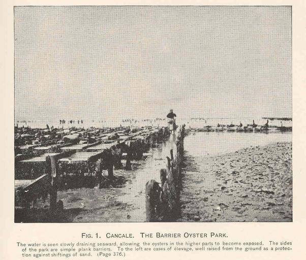 | Keywords: FMIB 47815 Cancale The Barrier Oyster Park.jpeg check categories 19 August 2015 3 Cancale The Barrier Oyster Park The water is seen slowly draining seaward allowing the oysters in the higher parts to become exposed The sides of the park are simple plank barriers To the left are cases of elevage well raised form the ground as a protection against shiftings of sand Subject Oyster culture Cancale France Geographic Subject France--Cancale Tag Shellfish 1890 00 Cite book Present Methods of Oyster-Culture in France Dean Bashford Washington DC Government Printing Office 1892 Bulletin of the United States Fish Commission vol 10 for 1890 Plate LXXIII-1 Creator Bashford Dean PD-UWASH-FMIB Institution University of Washington FMIB-source accession number 47815 Images from the Freshwater and Marine Image Bank to check Bashford Dean Oyster culture Cancale |