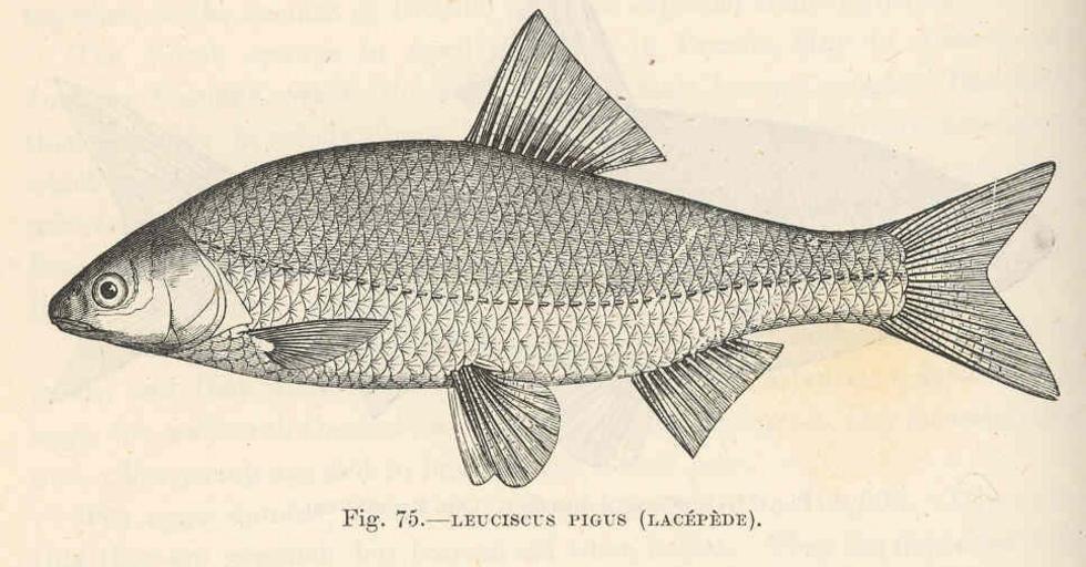 | Keywords: FMIB 48043 Leuciscus pigus (Lacepede).jpeg Leuciscus pigus Lacepede Subject Cyprinidae Leuciscus Tag Fish 1886 Cite book Fresh-Water Fishes of Europe a History of their Genera Species Structure Habits and Distribution Seeley H G London England Cassell Company Limited 1886 Fig 75 Creator Harry Govier Seeley PD-UWASH-FMIB Institution University of Washington FMIB-source accession number 48043 Images from the Freshwater and Marine Image Bank to check Harry Seeley Rutilus pigus | ||||