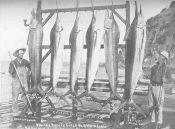 | Keywords: FMIB 49392 World's Record Sword Fish Catch Santa Catalina Island.jpeg check categories 17 September 2015 3 World's Record Sword Fish Catch Santa Catalina Island Mr Smith Warren Member of Tuna Club September 19th 1912 Six catalina sword fish in one day 202 lbs 8 minutes; 140 lbs 30 minutes; 134 lbs 21 minutes; 162 lbs 19 minutes; 158 lbs 19 minutes; 176 lbs 40 minutes; 16-ounce rod 24 line Captain George Farnsworth boatman Subject Swordfish Warren Smith Farnsworth George Santa Catalina Island California Geographic Subject United States--California--Santa Catalina Island Tag Sport Fishing 1913 Cite book Game Fishes of the World Holder Charles Frederick London England Hodder and Stoughton 1913 Fig 13 Reyes PD-UWASH-FMIB Institution University of Washington FMIB-source accession number 49392 Images from the Freshwater and Marine Image Bank to check Xiphias gladius Catalina Island Recreational fishing |