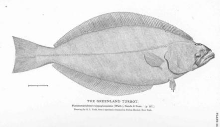 | Keywords: FMIB 50893 Greenland Turbot.jpeg check categories 7 September 2015 2 Greenland Turbot Platysomatichthys hippoglossoides Walb Gode Bean Subject Greenland halibut Tag Fish 1884 Cite book Fisheries and Fishery Industries of the United States Section I Natural History of Useful Aquatic Animals Plates Goode George Brown Washington DC Government Printing Office 1884 Plate 56 Creator H L Todd PD-UWASH-FMIB Institution University of Washington FMIB-source accession number 50893 Images from the Freshwater and Marine Image Bank to check H L Todd Reinhardtius hippoglossoides |