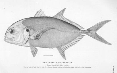 | Keywords: FMIB 50955 Cavally or Crevalle.jpeg check categories 7 September 2015 2 Cavally or Crevalle Caranx hippos L Gthr Subject Caranx Tag Fish 1884 Cite book Fisheries and Fishery Industries of the United States Section I Natural History of Useful Aquatic Animals Plates Goode George Brown Washington DC Government Printing Office 1884 Plate 99 Creator H L Todd PD-UWASH-FMIB Institution University of Washington FMIB-source accession number 50955 Images from the Freshwater and Marine Image Bank to check H L Todd Caranx |