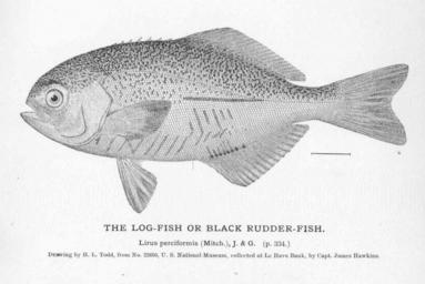 | Keywords: FMIB 50969 Log-Fish or Black Rudder-Fish.jpeg check categories 7 September 2015 2 Log-Fish or Black Rudder-Fish Lirus perciformis Mitch J G Subject Seriola Lirus Tag Fish 1884 Cite book Fisheries and Fishery Industries of the United States Section I Natural History of Useful Aquatic Animals Plates Goode George Brown Washington DC Government Printing Office 1884 Plate 111 Creator H L Todd PD-UWASH-FMIB Institution University of Washington FMIB-source accession number 50969 Images from the Freshwater and Marine Image Bank to check H L Todd Seriola |