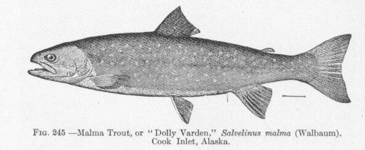 | Keywords: FMIB 51782 Malma Trout, or "Dolly Varden" Salvelinus malma (Walbaum) Cook Inlet, Alaska.jpeg Malma Trout or Dolly Varden Salvelinus malma Walbaum Cook Inlet Alaska Subject Dolly Varden Fish Tag Fish 1907 Cite book Fishes Jordan David Starr New York City NY Henry Holt and Company 1907 Fig 245 Creator David Starr Jordan PD-UWASH-FMIB Institution University of Washington FMIB-source accession number 51782 Images from the Freshwater and Marine Image Bank to check David Starr Jordan Salvelinus malma |