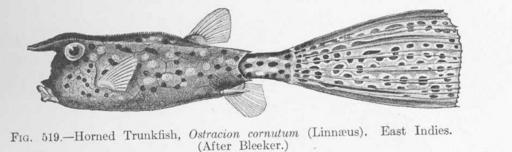 | Keywords: FMIB 52091 Horned Trunkfish, Ostracion cornutum (Linnaeus) East Indies.jpeg Horned Trunkfish Ostracion cornutum Linnaeus East Indies Subject Tetraodontiformes Tag Fish 1907 Cite book Fishes Jordan David Starr New York City NY Henry Holt and Company 1907 Fig 519 Creator David Starr Jordan PD-UWASH-FMIB Institution University of Washington FMIB-source accession number 52091 Images from the Freshwater and Marine Image Bank to check David Starr Jordan Lactoria cornuta in art | ||||