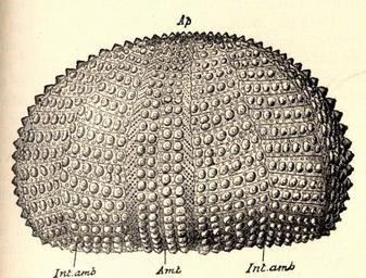 | Keywords: FMIB 52635 Test of sea-urchin, with the spines removed to show the arrangement of the plates, lateral view -.jpeg check categories 11 September 2015 2 Test of sea-urchin with the spines removed to show the arrangement of the plates lateral view Amb ambulacral zone with its perforated plates; Ap apiral aboral pole; Int amg Interambulacral zones Subject Sea urchins Tag Invertebrates 1903 Cite book Sea-Beach at Ebb-Tide Arnold Augusta Foote New York Century Co 1903 219 Creator Augusta Foote Arnold PD-UWASH-FMIB Institution University of Washington FMIB-source accession number 52635 Images from the Freshwater and Marine Image Bank to check Augusta Foote Arnold Echinoidea |