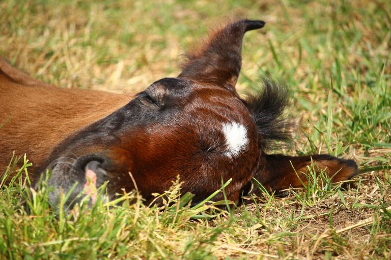 Keywords: foal horse suckling thoroughbred arabian brown mold tired sleep pasture