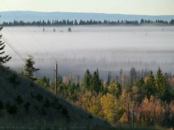 Keywords: fog bank early morning fog scenery landscape forest idyll british columbia canada nature fall autumn