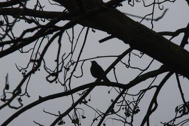 Keywords: fog bird silhouette blackbird branch black tree
