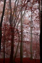 Keywords: fog forest nature autumn red trees leaves mood fall foliage