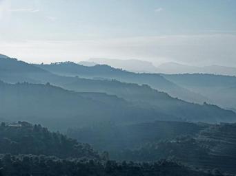 Keywords: fog mist mountains contrasts landscape blur silhouette