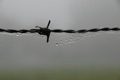 Keywords: fog mist wet rain dew drop water barbed wire