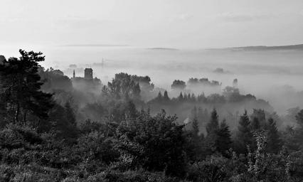 Keywords: fog morning view landscape poland bolechowice light tree