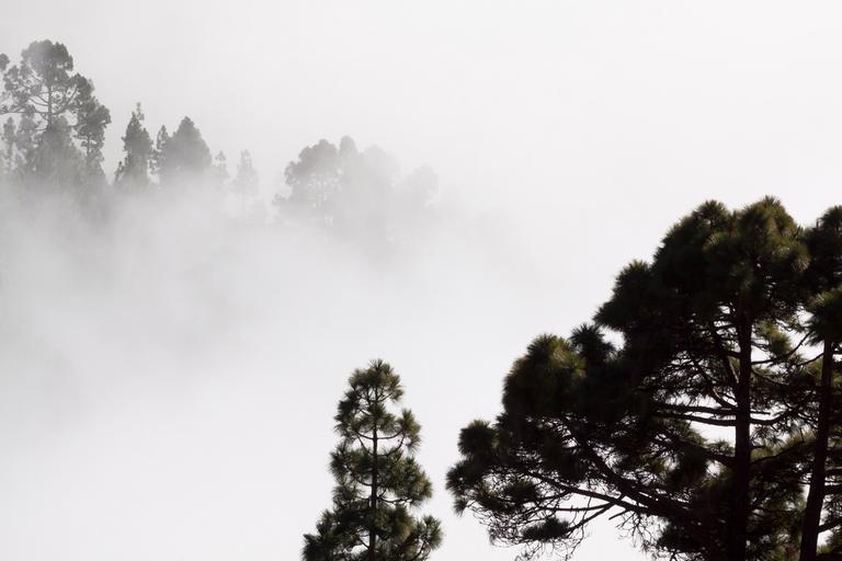 Keywords: fog outlines pine trees mysterious landscape invisible