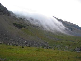 | Keywords: glacier national park glaciernationalpark hiking backcountry fifty mountain fiftymountain trail mountains glaciers rocks alpine scenery weather outdoor landscape mountain mountainside hill field grassland Fog drifts over the Continental Divide near Sue Lake Bench, above Fifty Mountain Camp. Photo: David Restivo, NPS Fog drifts over the Continental Divide near Sue Lake Bench, above Fifty Mountain Camp. Photo: David Restivo, NPS | ||||