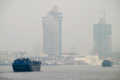 Keywords: fog shanghai boats smog river skyscraper china asia air pollution architecture skyscrapers building skyline city water ship modern