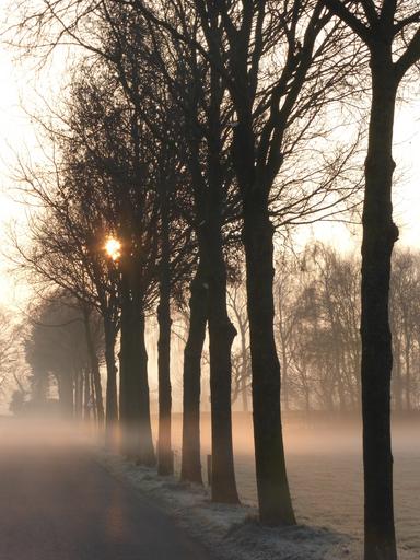 Keywords: fog trees morning sunrise