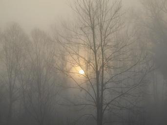 Keywords: fog trees nature dawn backlight