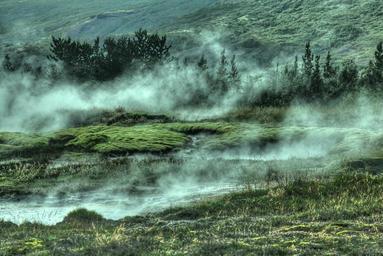 Keywords: foggy hillside forest mountain fog landscape mist scenery outdoor valley meadow hill tree field bush green haze