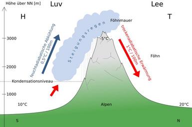 Keywords: Föhn.svg de Schematische Darstellung der Entstehung des Föhns 2016-02-17 own Slbch Cc-zero Föhn wind Geographic diagrams