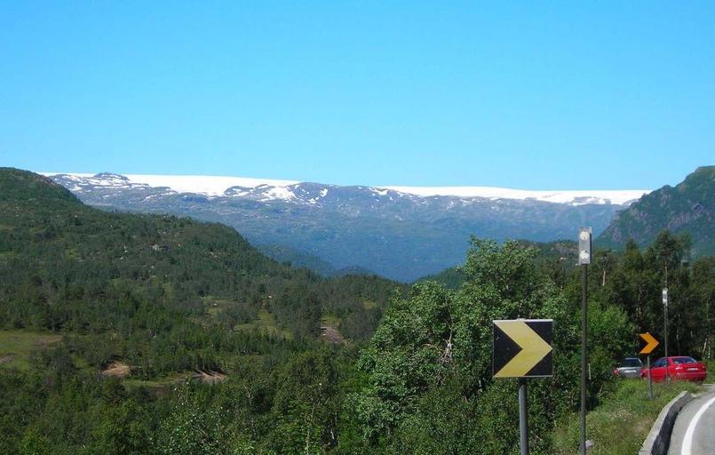 Keywords: Folgefonna from east.jpg Folgefonna seen from road E134 own photo by me 2006-07-15 User BIL 59 876103 6 667671 Odda Folgefonna E134 Hordaland