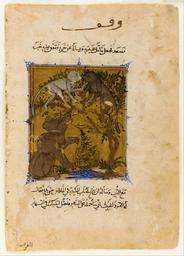 | Keywords: Folio from a Sulwan al-Muta (Solace of pleasure) by Ibn Zafar; verso- The Tale of the Bear and the M... - Google Art Project.jpg 6964628 Unknown /collection/freer-gallery-of-art-smithsonian/artwork/folio-from-a-sulwan-al-muta-solace-of-pleasure-by-ibn-zafar-verso-the-tale-of-the-bear-and-the-monkeys-unknown/6596960/ F1954 2 author /collection/freer-gallery-of-art-smithsonian/ Freer Gallery of Art Smithsonian 322006 http //www asia si edu/ 3/9/2012 7 29 32 PM /collection/freer-gallery-of-art-smithsonian/artwork/folio-from-a-sulwan-al-muta-solace-of-pleasure-by-ibn-zafar-verso-the-tale-of-the-bear-and-the-monkeys-unknown/6596960/ 1330 circa 1335 Mamluk period Opaque watercolor ink and gold on paper 249 6596960 True 1340 3/25/2012 5 21 22 AM F1954 2 Purchase Manuscript 1330 1350 Egypt Origin w176 x h249 cm circa 1335 False 0 716796875 © Digital Image Smithsonian Institution Object folio-from-a-sulwan-al-muta-solace-of-pleasure-by-ibn-zafar-verso-the-tale-of-the-bear-and-the-monkeys-unknown Folio from a Sulwan al-Muta Solace of pleasure by Ibn Zafar; verso The Tale of the Bear and the Monkeys f 176 Opaque watercolor ink and gold on paper Mamluk period special url_id QgEAP_-a0pcxFQ PD-old-100 Book pages in Arabic Drawings of bears Medieval miniatures of monkeys Freer Gallery of Art Google Art Project works by unknown artist Bears in fables Islamic manuscripts in Freer Gallery of Art |