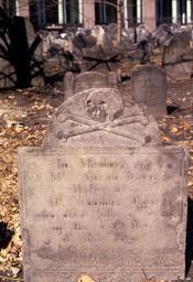 Keywords: Folk art.jpg en An old tombstone from 1736 found in Boston MA USA own Carptrash circa 1987 ;Photo cc-by-sa-3 0 GFDL ;Tombstone PD-old-100 Cemeteries in Boston Reliefs of skull and crossbones Grave reliefs of skulls
