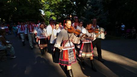Keywords: folklore dance vocal violin harmonica entertainment celebration tradition slovakia costume costumes women to sing play lučenec march people