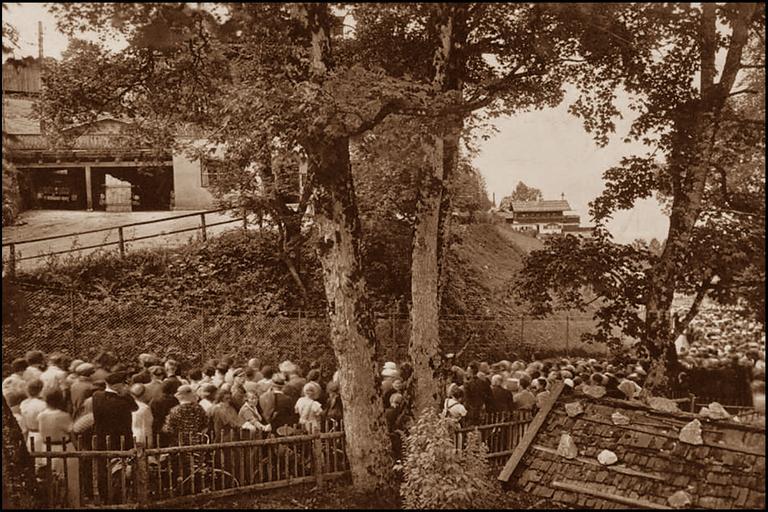 Keywords: Folla di gente in visita ad Hitler verso la Haus Wachenfeld Podan